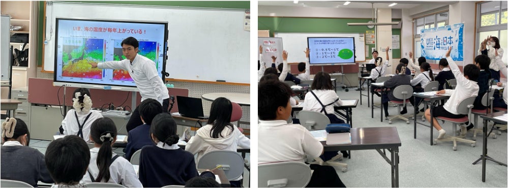 授業の最後には、講師から「今日お勉強したことを、ぜひ周りの人にも広めてください」というメッセージが送られました。子どもたちからは、「川にも魚がたくさんいることが分かった」、「節電や節水などを行い、地球温暖化を食い止めたい」といった感想が上がりました。海を守るための意識を共有し、次世代へ豊かな海を引き継ぐための新たな一歩を踏み出す一日となりました。