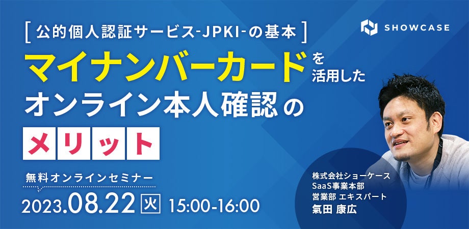 ショーケースでは、マイナンバーカードを活用したオンライン本人確認サービスである「公的個人認証サービス」の基本をはじめ、公的個人認証サービスと他のオンライン本人確認方式の違いやメリット・デメリットやマイナンバーカードの普及状況などについて解説する無料オンラインセミナーの開催を決めました。