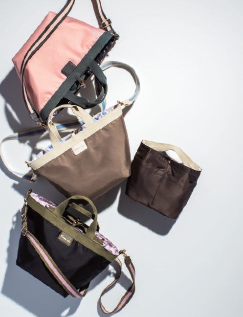キャリークランは、前向きな女性に向けて相棒となるようなアイテムを提案するブランドです。今回は裏地にオリジナルのプリンセス柄を使ったリバーシブル仕様のミニトートとバッグインバッグをセットで紹介します。