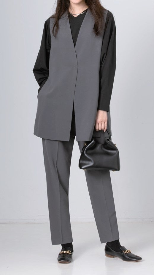 スタイリングとカラーアドバイスの2つの観点から“色の力で毎日をハッピーに”をテーマに、30年以上活躍している現役スタイリストの岩崎聡美氏がディレクションするブランドです。今回はスタイルアップが叶うジレとパンツのセットアップを紹介します。