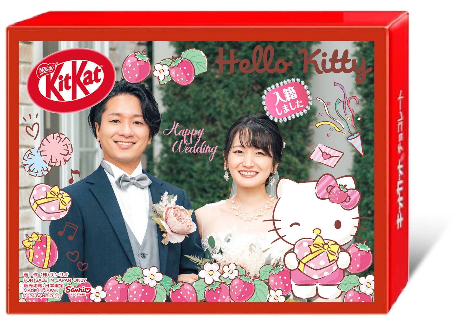 お気に入りの写真や贈りたいメッセージを自由にデザインし、世界で一つだけの“オリジナル キットカット”を作れるオンラインサービス「チョコラボ キットカット」において、「サンリオキャラクターズ」限定フレーム29種を、2024年3月26日(火)~7月31日(水)の期間限定で提供します。ウェディングや誕生日といったイベント・行事での利用シーンや、子供やペットと過ごす日常シーンだけでなく、新生活が始まるこの時期に、入学式や歓迎会などで新しく出会う人とのコミュニケーションに活用することを提案していきます。なお、「チョコラボ」は個人で利用するだけではなく、大口発注やOEM制作も対応しており、会社や製品の紹介、周年記念品などで、単なる販売促進グッズにとどまらず、お客さまに”感謝の気持ち”を伝えるギフトとして利用することもおすすめです。