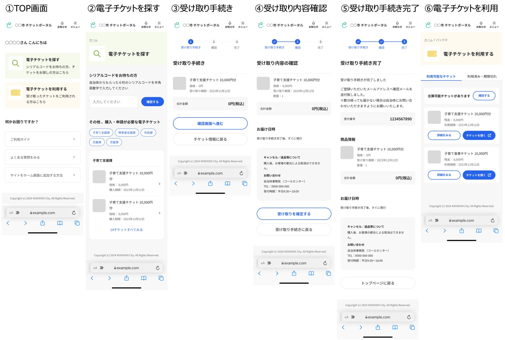 ポータルサイトでの電子商品券受け取り・利用イメージ: