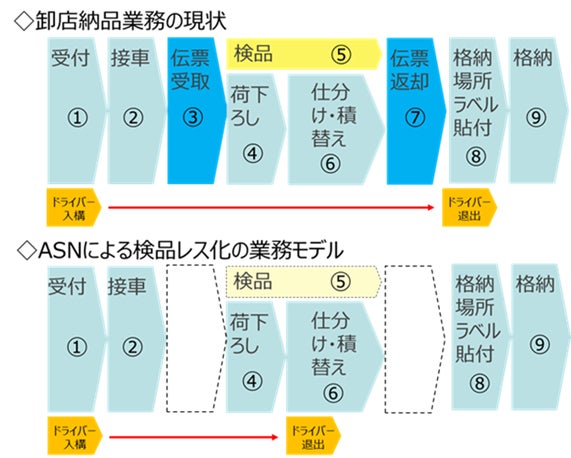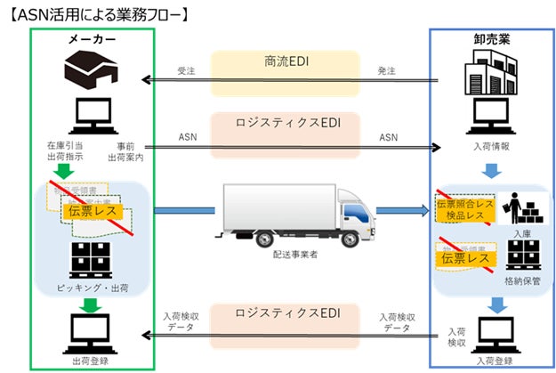 ※1 日用品業界におけるメーカー、卸売業間の物流標準EDI(Electronic Data Interchange)。メーカーから卸売業に対する事前出荷情報(ASN)の配信、卸売業からメーカーに対して商品受領の情報を提供する「入荷検収データ」の配信機能等を備える。