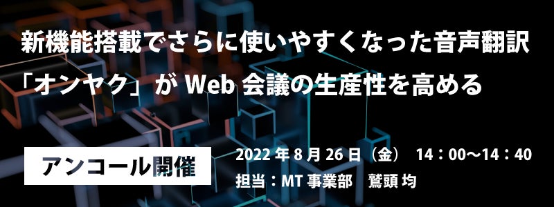 AI自動翻訳のロゼッタ ウェビナー『新機能搭載でさらに使いやすくなった音声翻訳「オンヤク」がWeb会議の生産性を高める』8月26日(金)開催