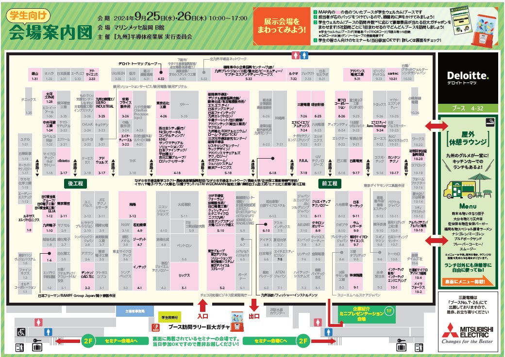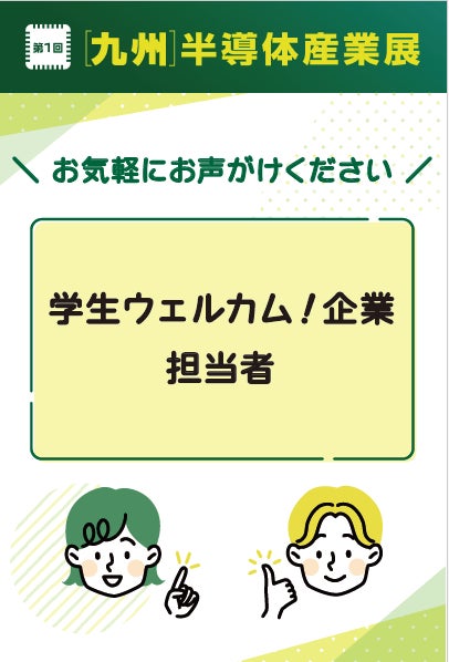 本展示会は、通常のビジネス向け展示会と異なり学生向けのコンテンツを充実させており、九州で半導体を学ぶ大学・大学院生、高等専門学校(高専)生の来場を歓迎し、人手不足が喫緊の課題である半導体業界の課題解決へ向けての場を創出します。
