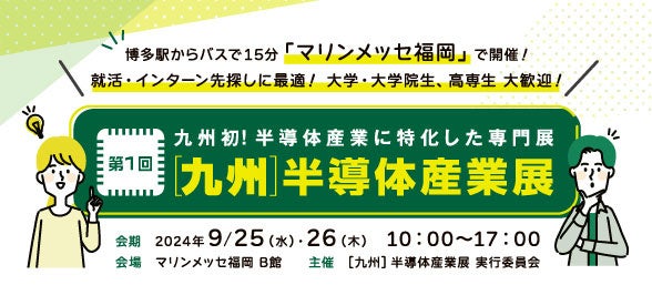 [九州]半導体産業展 実行委員会(実行委員長:安浦 寛人(九州大学 名誉教授)/運営:(株)イノベント)は、2024年9月25日(水)・26日(木)の2日間、マリンメッセ福岡(福岡県福岡市)にて、半導体産業に特化した展示会「第1回 [九州]半導体産業展」を開催いたします。