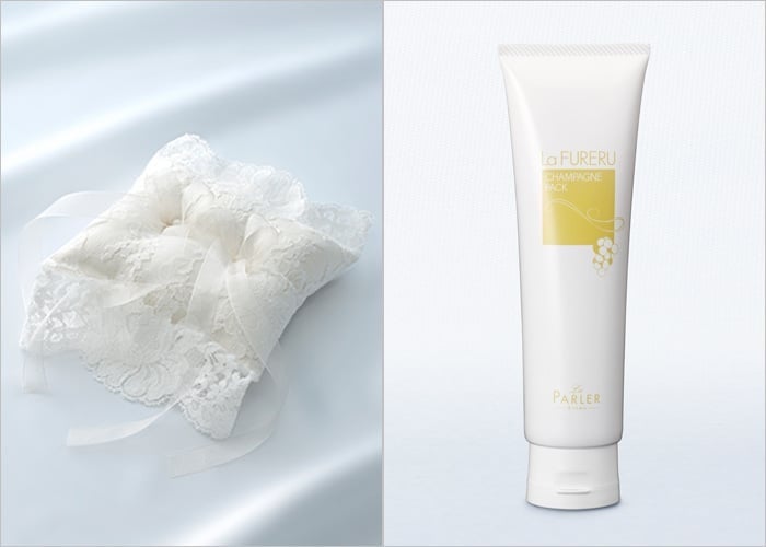 マリッジリングをご成約いただいた方に、ヨーロッパの高級リバーレースで仕立てた「リングピロー」またはエステティックサロン取り扱いの「シャンパンパック」をプレゼントいたします。