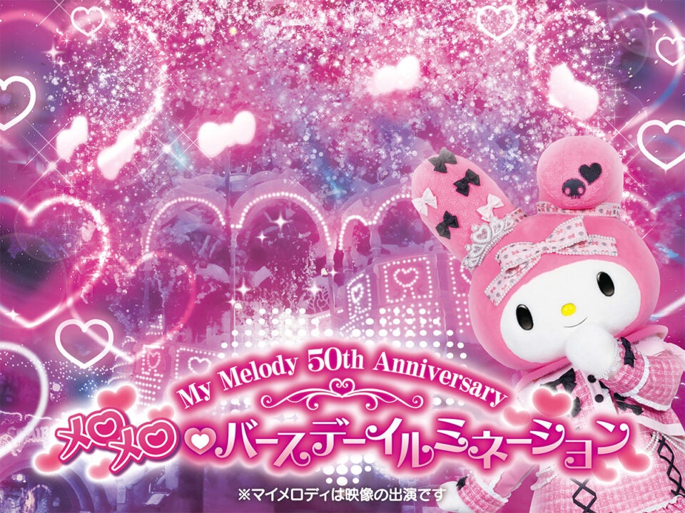 1月18日に迎えるマイメロディの誕生日にあわせ、2025年1月17日(金)~3月31日(月)まで「My Melody 50th Anniversary メロメロ♡バースデーイルミネーション」を上演。さらに、同期間のピューロランドのクローズアナウンスをマイメロディが担当する他、バースデーグリーティングの実施や、限定のグッズ・フードの販売などを予定しています。