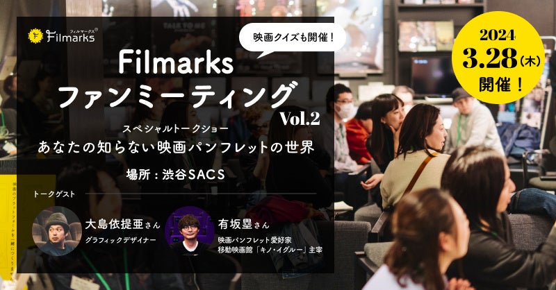 Filmarks主催!映画好きのためのリアル交流イベント「Filmarksファンミーティング Vol.2」開催!【大島依提亜さん&有坂塁さんご登壇】