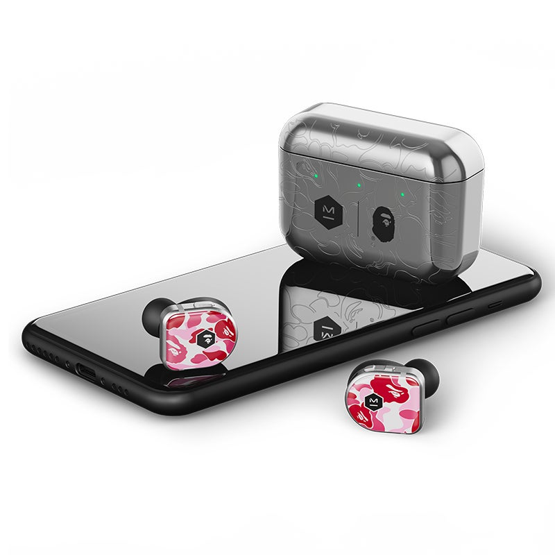 この限定コレクションでは、MG20 Wireless Gaming HeadphonesとMW08 Active Noise-Cancelling True Wireless Earphonesの2モデルにBAPE®の代表的なカモフラージュ柄である「ABC CAMO」のブルーとピンクが採用されています。