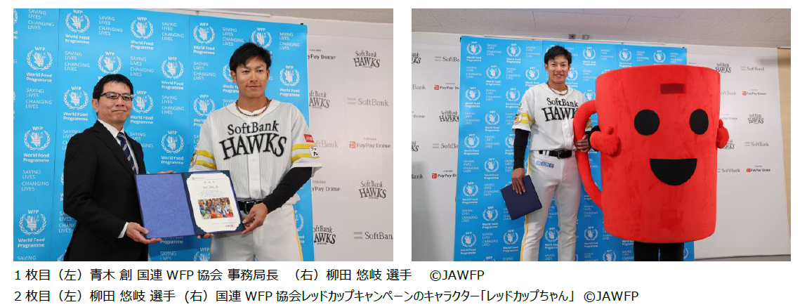 1枚目(左)青木 創 国連WFP協会 事務局長 (右)柳田 悠岐 選手 ©JAWFP