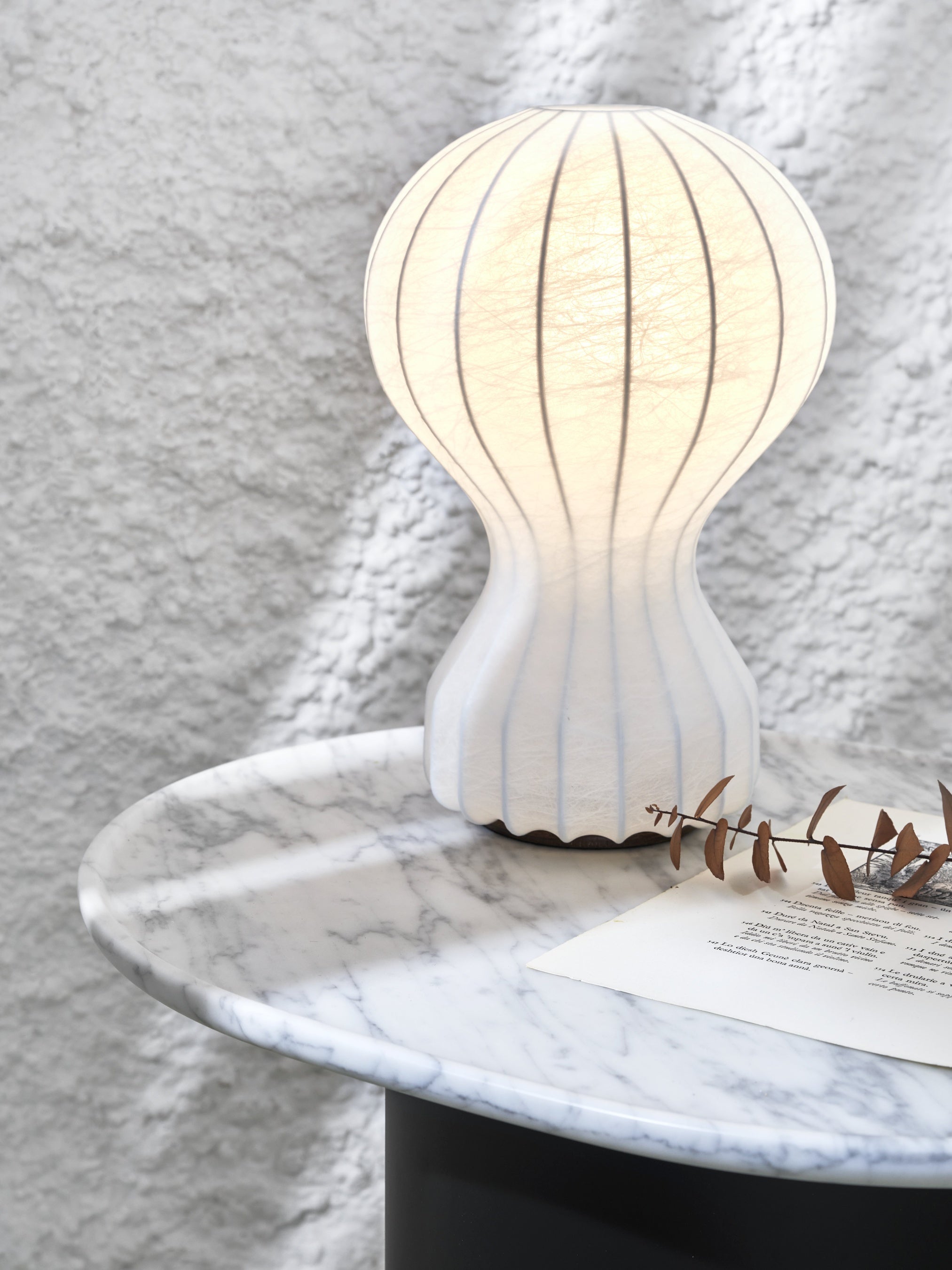 繊細なポール上にバランスよく配置されたガラスシェードが特徴で、ミニマルな棒と球体という要素で構成されたデザインには、普遍的な美しさと幻想的な雰囲気が融合しています。