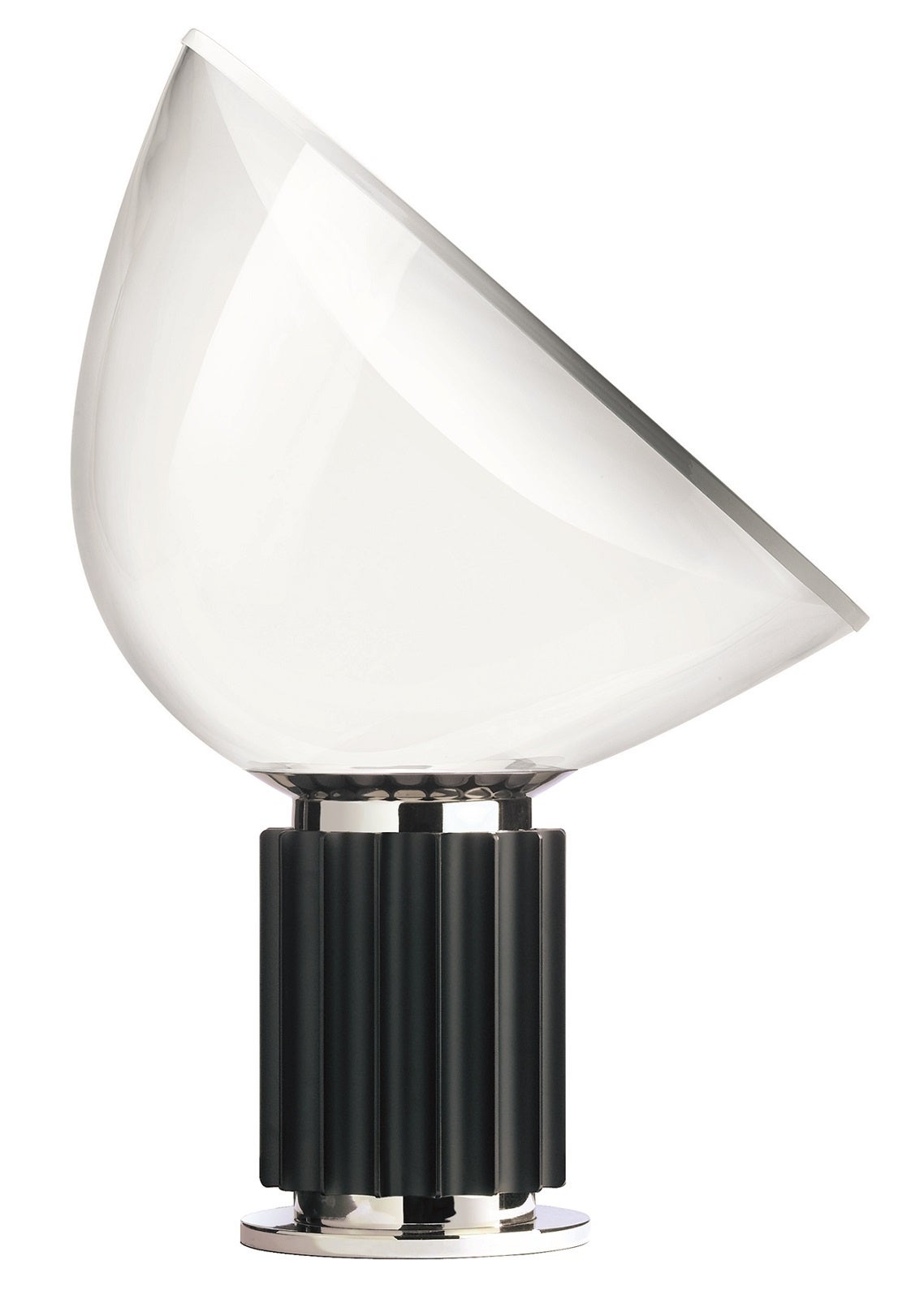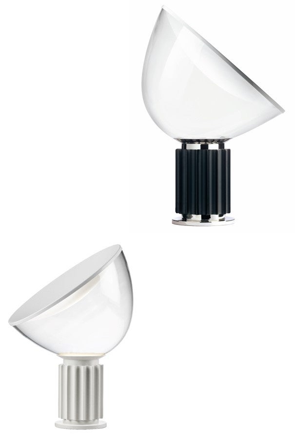 1958年にカスティリオーニ兄弟がデザインした「TACCIA」テーブルランプは、インダストリアルな雰囲気を持つ象徴的なボウル状のリフレクターが特徴です。2016年バージョンではLED光源を採用し、透明な樹脂製リフレクターで再現されました。高度な射出成形技術とレーザーカッティングにより、優れた美しさと耐久性を実現しています。