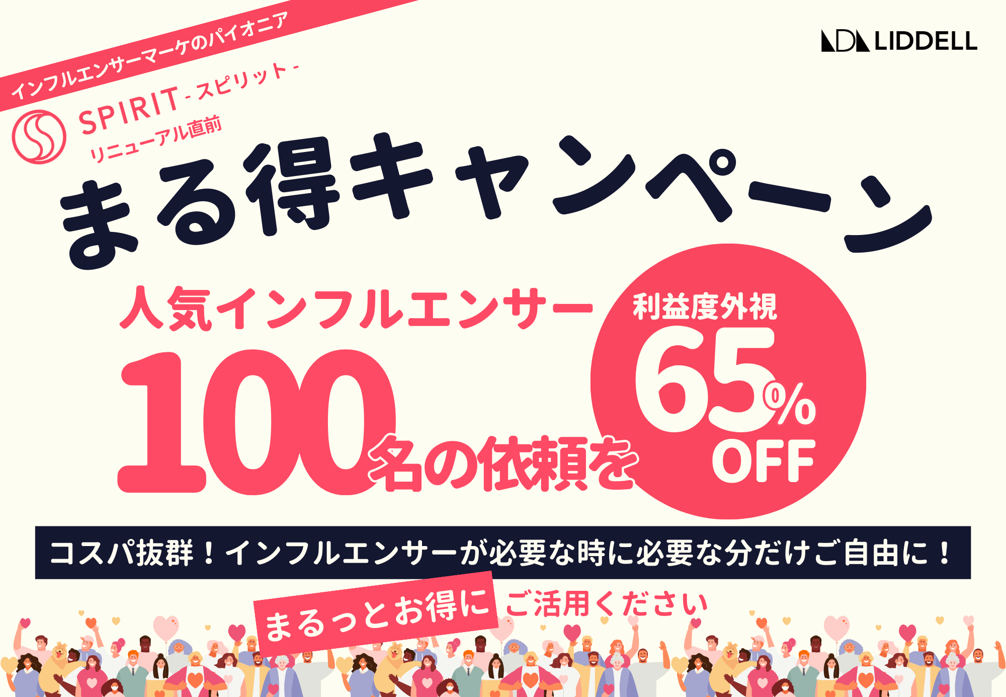 アップデート前に、現行SPIRITの特徴である「インフルエンサーの熱量と効果の分析」を体感いただき、リニューアルローンチに控えていただきたく、利益度外視のキャンペーンを開催いたします。