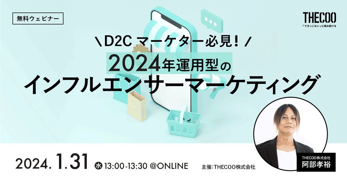 D2Cマーケター必見!運用型のインフルエンサーマーケティング2024 1/31(水)13時開始 無料ウェビナー開催決定!
