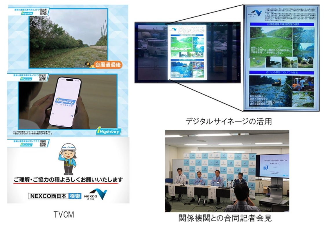 ・TVCM、ラジオ、休憩施設におけるデジタルサイネージを活用した広報や気象予測に基づく今後の状況等につい
