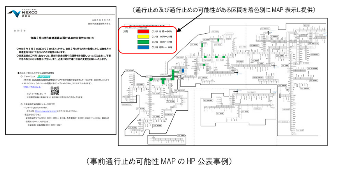て、事前に通行止めの可能性についてお知らせします。この際には、24時間以内に通行止めの可能性がある区間