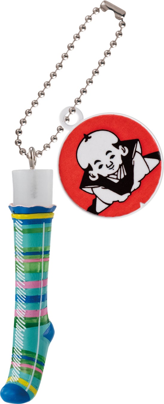 レッグ・インナーウエアの老舗・福助株式会社(本社:東京都江東区/代表取締役社長:坂本友哉)のオリジナルブランド「.fukuske by FUKUMATSU(ドットフクスケ バイ フクマツ)」の靴下デザインが、株式会社バンダイ(本社:東京都台東区)が展開する「ガシャポン®」のモチーフとなって「福助 ダブルスイングフィギュア」として、2025年6月第4週より順次全国のガシャポン自販機にて発売されることになりました。
