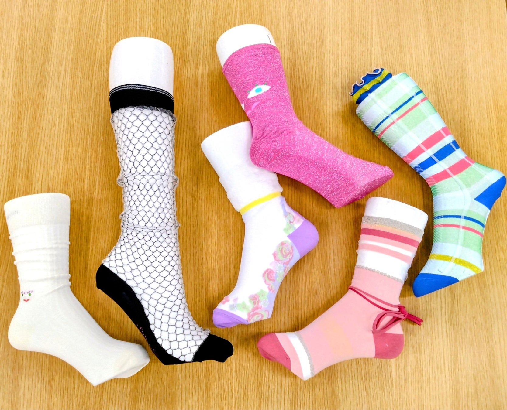 コンセプト:ブランドのコンセプトは「ハッピーディパーチャー」。お気に入りの素敵な靴下をはいて、楽しい気分で出かける