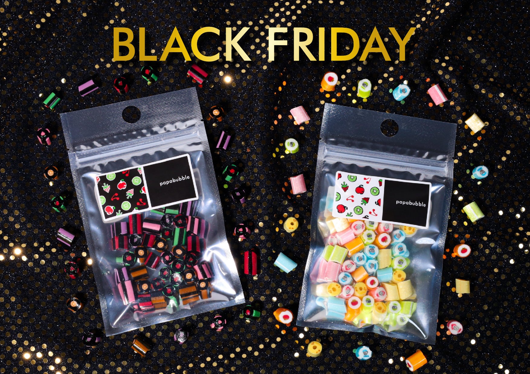 Craft Candy Theater「PAPABUBBLE/パパブブレ」は、11月第4金曜日の「ブラックフライデー」にちなんだ、お得でユニークなキャンディを、11月21日(木)より全国店舗及びパパブブレ公式サイト(https://papabubble.co.jp/collections/black-friday)にて発売いたします。