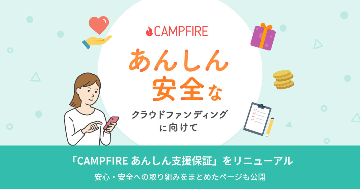 CAMPFIRE、より安心・安全なクラウドファンディング環境を推進すべく「CAMPFIRE あんしん支援保証」をリニューアル