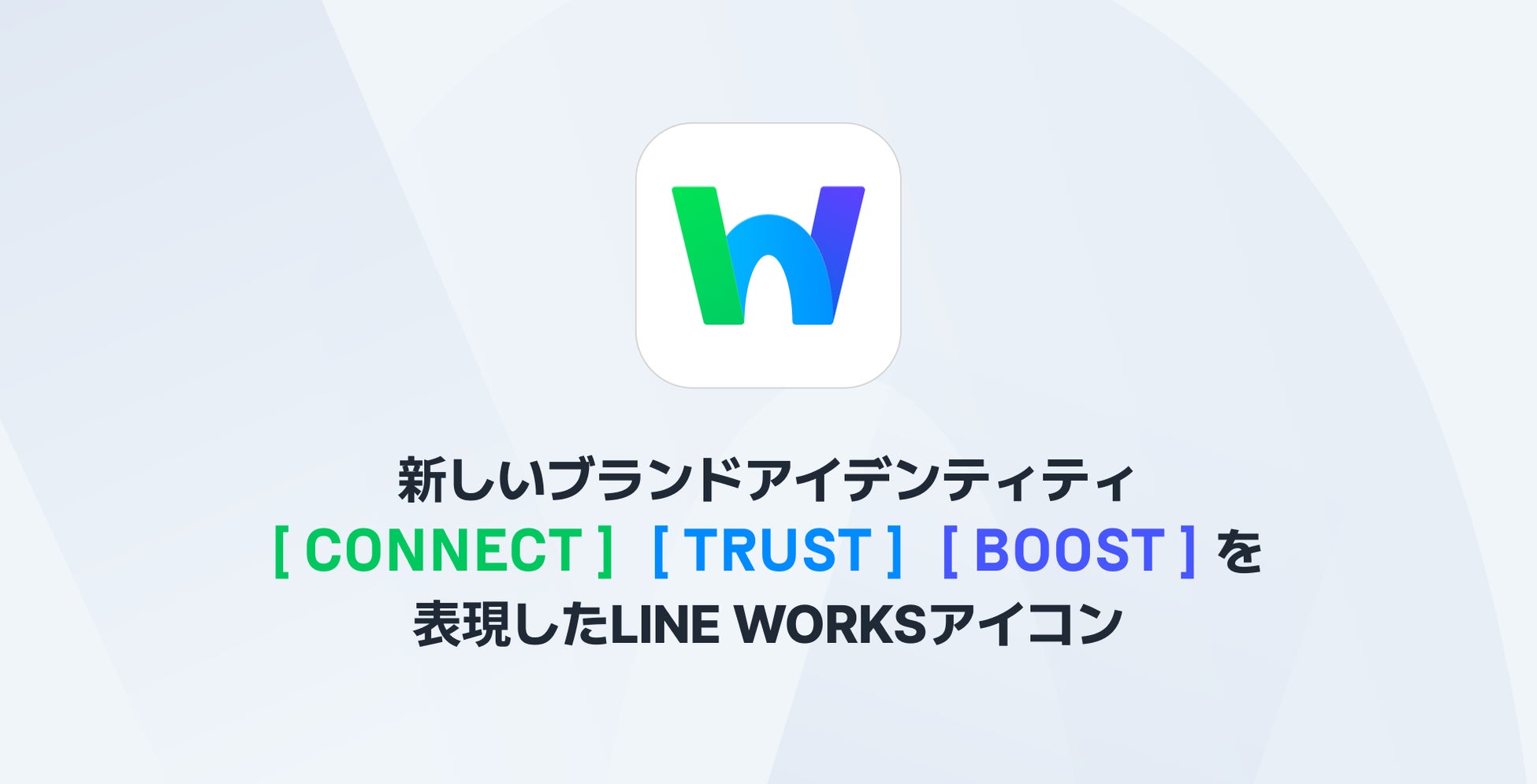 新しいアイコンを構成するパーツがそれぞれ「CONNECT」「BOOST」「TRUST」の3つの意味を持ち、「LINE WORKS」が提供する価値と、お客様のビジネス成長に対する貢献を表現しています。