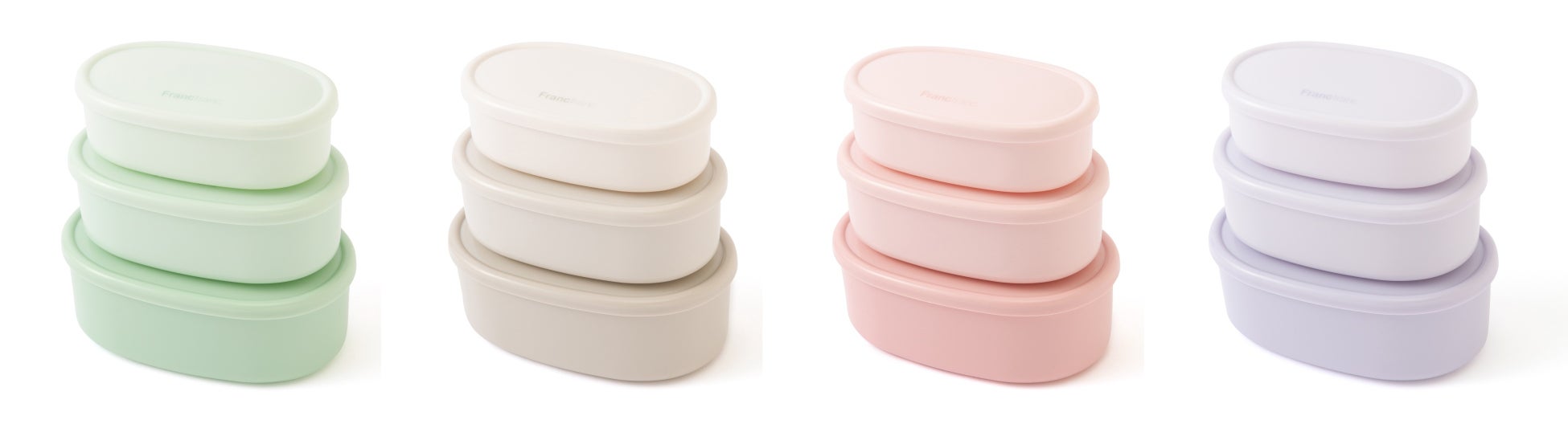 抗菌仕様のフードコンテナ3点セットです。カラフルな保存容器としてはもちろん、フルーツやおかず単品など少量用のランチボックスとしての使用もおすすめです。サイズ違いのセットなので幅広い用途でご使用いただけます。使用しないときは1つに収納できるのも嬉しいポイントです。