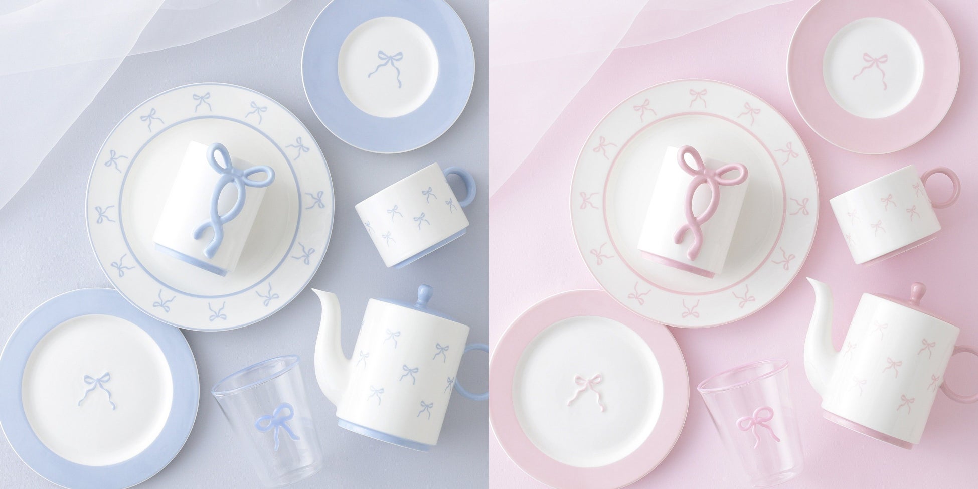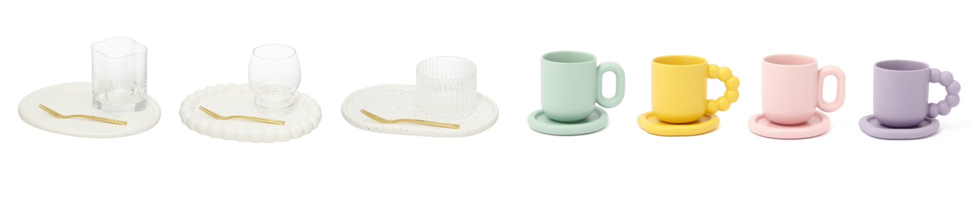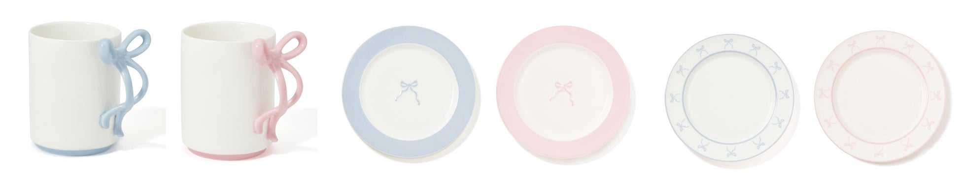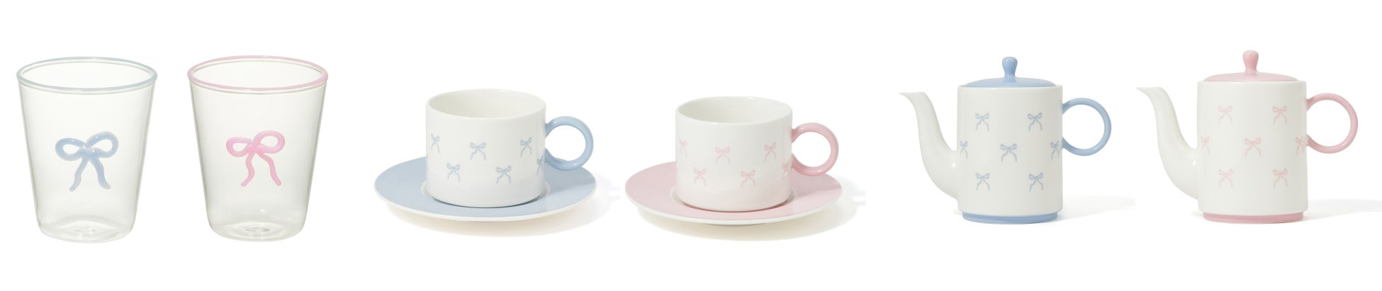 トレンドのリボンのプリントや3Dのリボンがかわいいセラミックシリーズです。リボンの表現方法がアイテムによって異なるので、統一感を持たせつつそれぞれ異なる表情を楽しめます。取手の立体的なリボンが印象的なマグカップや、ぷっくりしたリボンを正面にあしらったグラスなど、シンプルながらもキャッチーなワンポイントを施したデザインがスイーツやドリンクを彩ります。