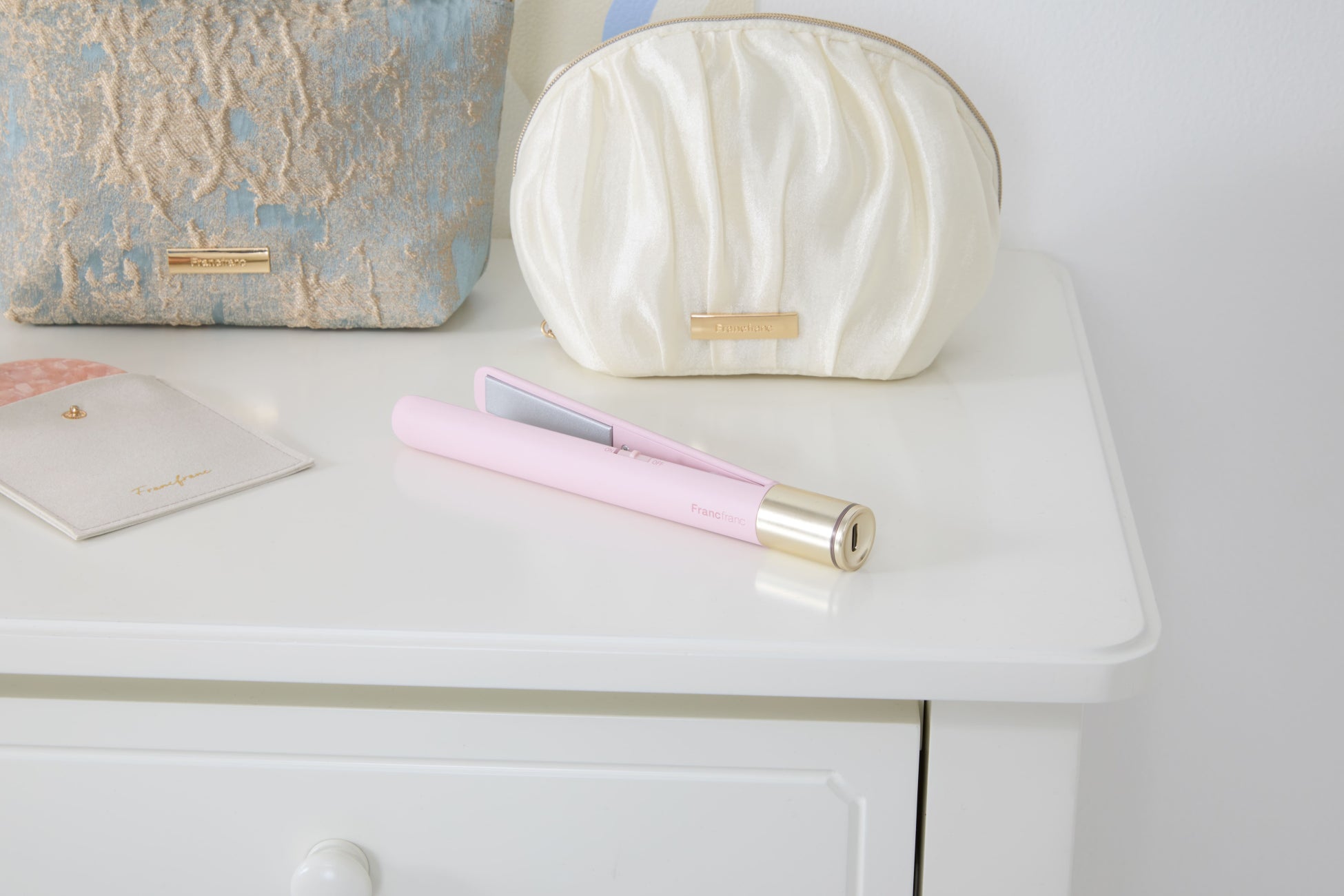 充電式のヘアアイロンです。充電式でコンセントいらずなので、お出かけ先や電源のない場所でも手軽にヘアアレンジができます。