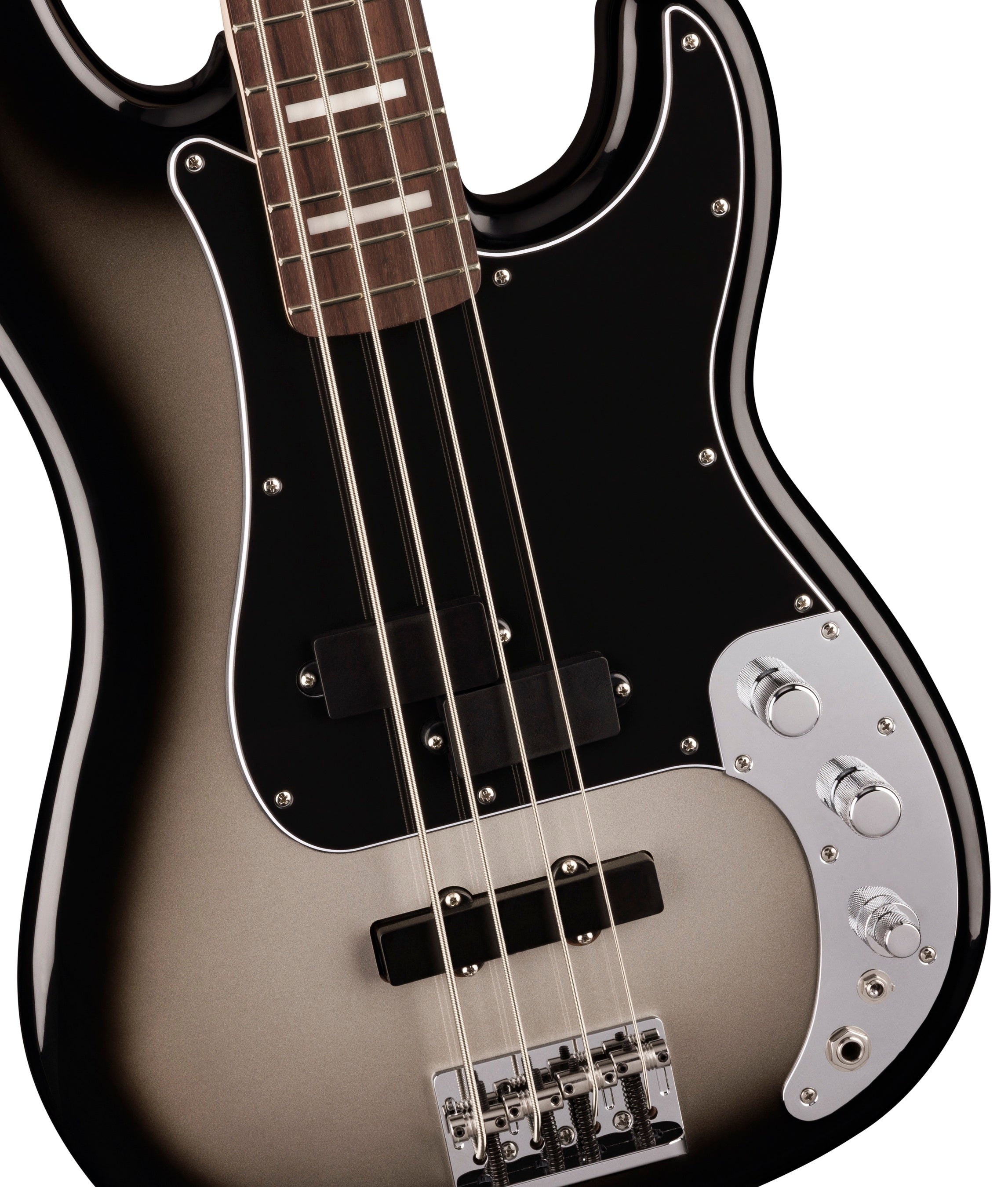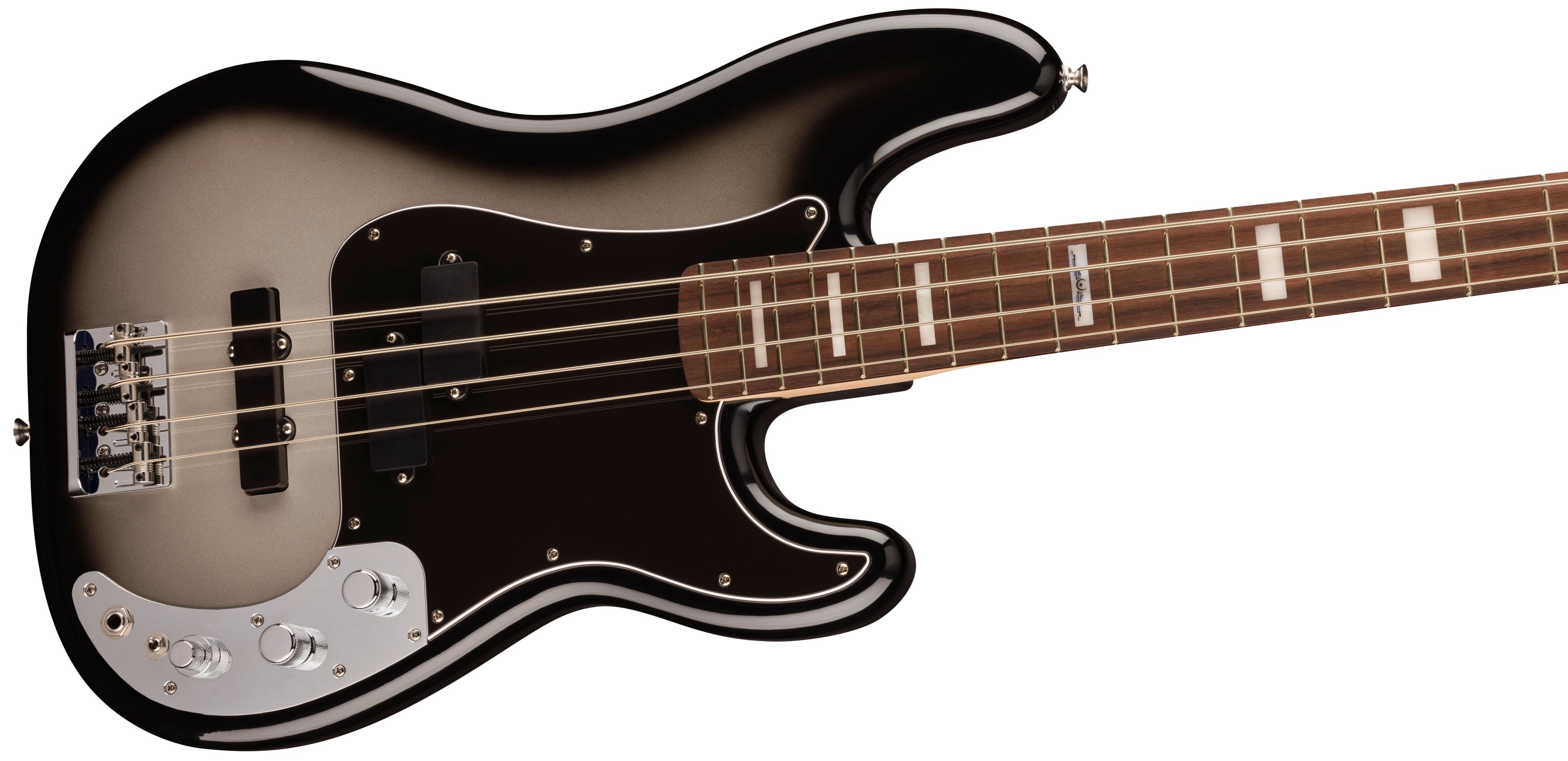 「Troy Sanders Precision Bass®」は、トロイの激しく大胆なサウンドを再現するために必要なすべてを備えたモデルです。Mastodonは20年以上にわたるツアーとレコーディングの経験を経て、時代を超えた革新的なサウンドを生み出してきましたが、このベースは初めてのプレイヤーでも夢のトーンを手に入れることができます。9.5インチラジアスの指板と“C”シェイプネックは、快適さを保ちながら複雑なベースラインを簡単に実現します。心地よい演奏性の一方で、残忍さをにじませる重厚なローエンドも提供します。70年代スタイルのフェンダーロゴをフロントに、トロイのサインデカールをバックにあしらったヘッドストックもまたSilverburstのマッチングフィニッシュです。ネックプレートには、Mastodonの“Remission”ロゴが、そして12フレットインレイにカスタム“Emperor of Sand”のアイコンが施されています。トロイ・サンダースのシグネイチャーピックアップとカスタムヴォイシングされた18Vプリアンプの組み合わせにより、豊富なヘヴィトーンをプレイヤーに届けます。