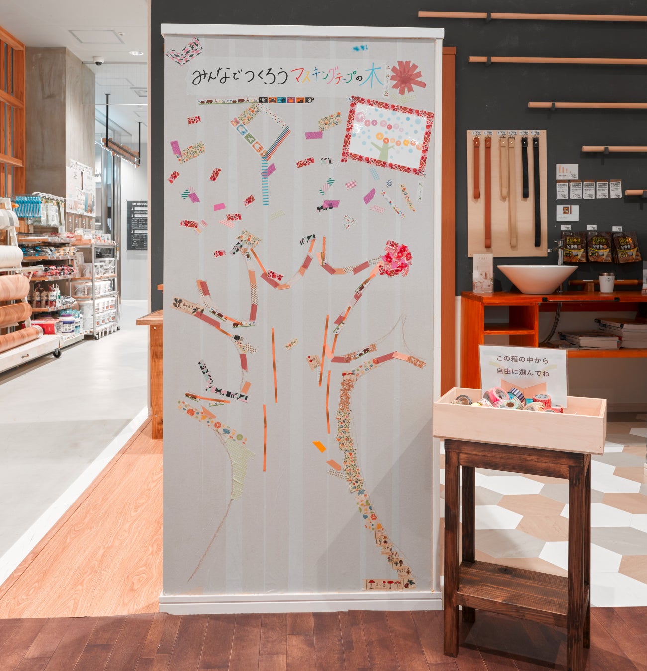 DCM DIY placeでは、お子さまから大人まで楽しめる「みんなでつくろうマスキングテープの木」を店頭に設置しています。葉っぱやお花を表現する等、マスキングテープを自由に体験いただけます。(DCM DIY place限定)