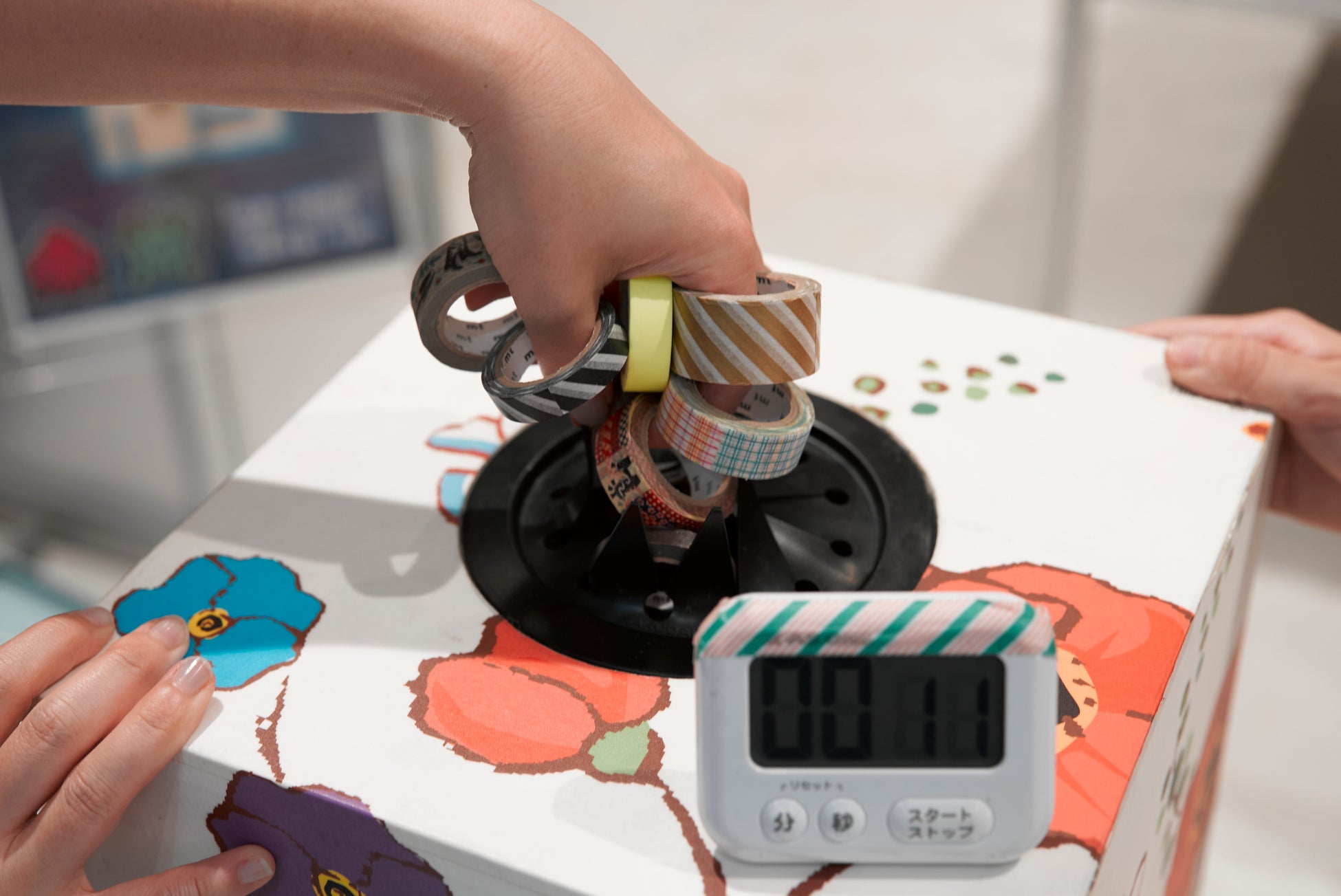 期間中、500円(税込)で、つかみ取りイベントを開催しています。20秒の時間内に、片手でつかめるだけつかんで箱から取り出していただきます。取り出しは1回のみ。店舗では販売していないレアなマスキングテープも入っている可能性もございます。不定期開催となりますので、HPの情報をご参照ください。