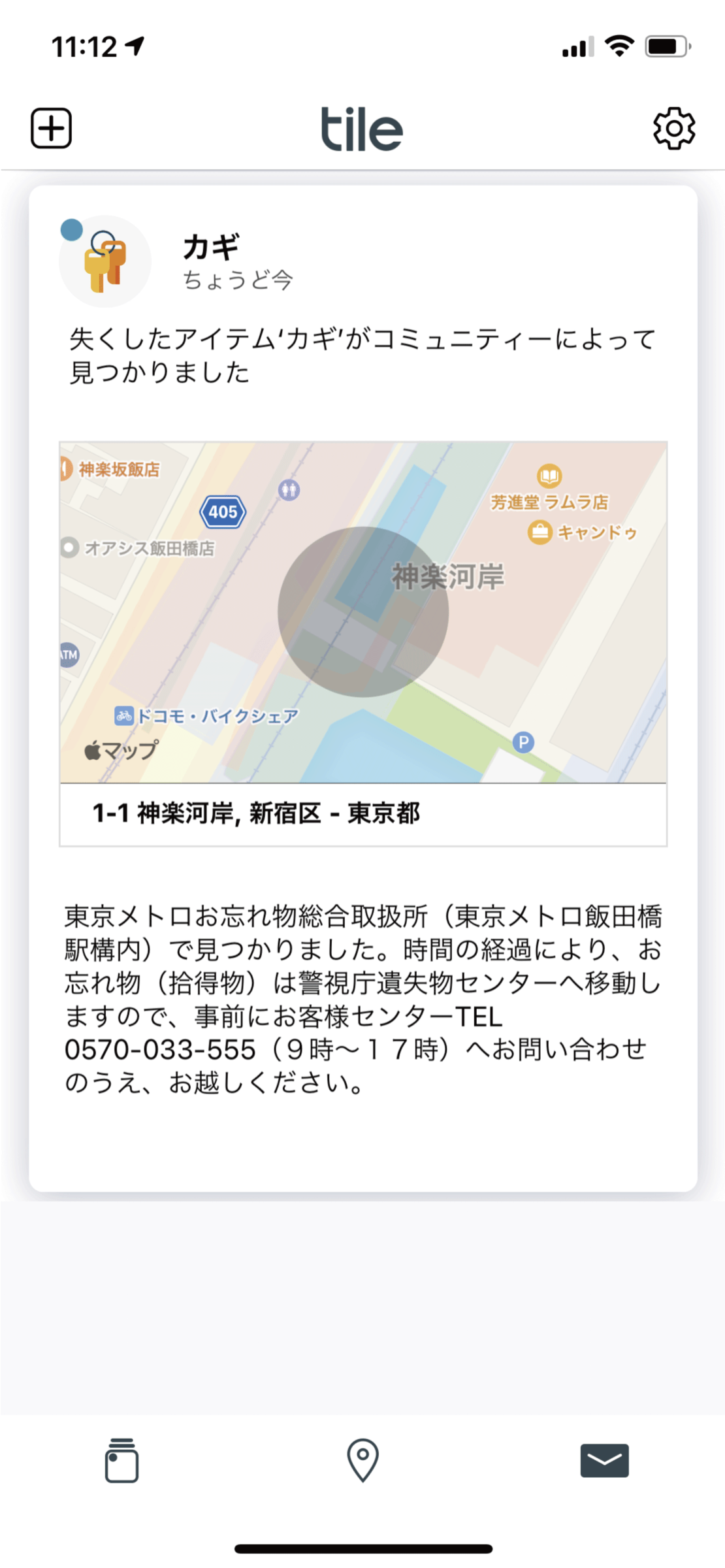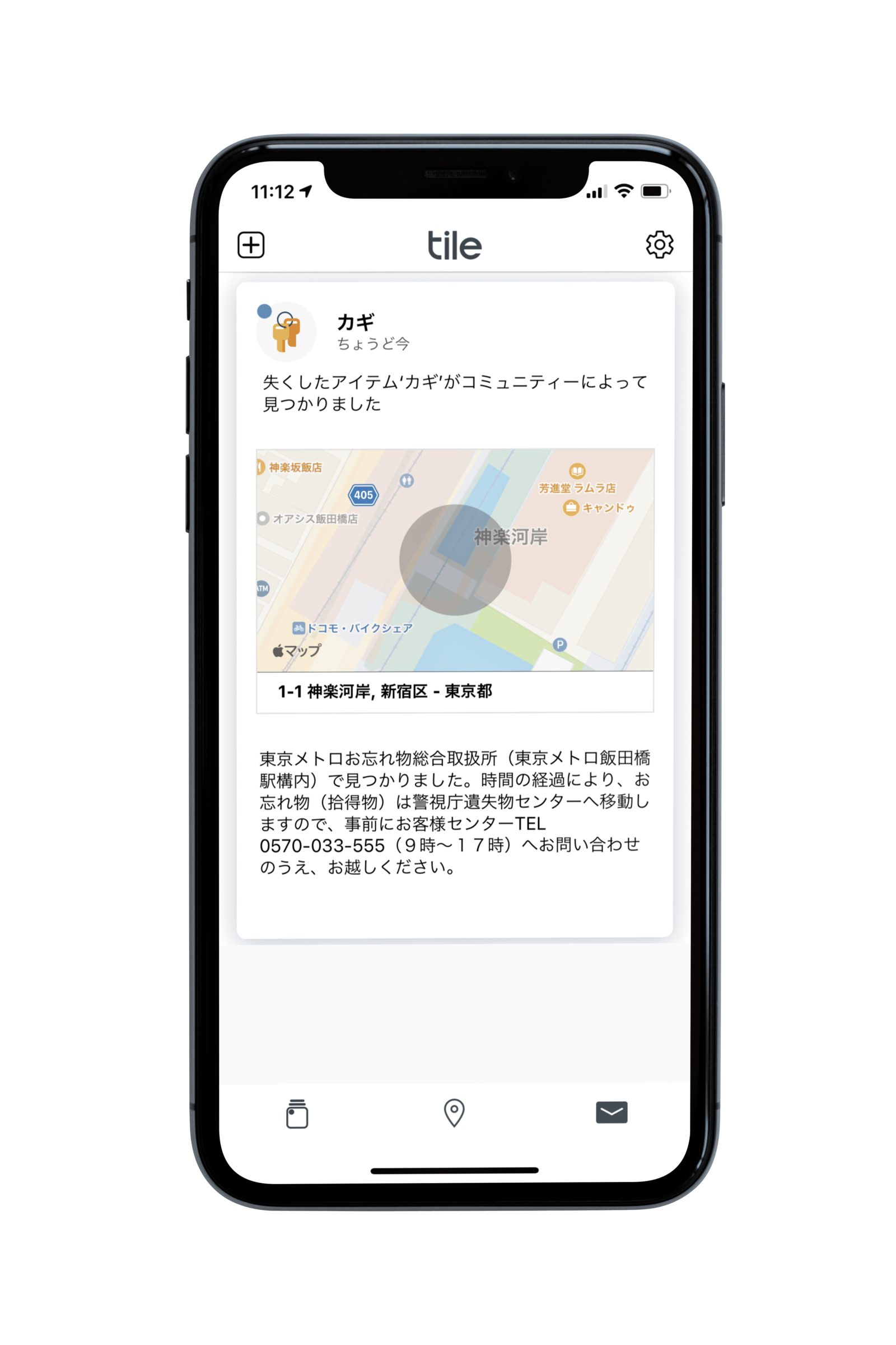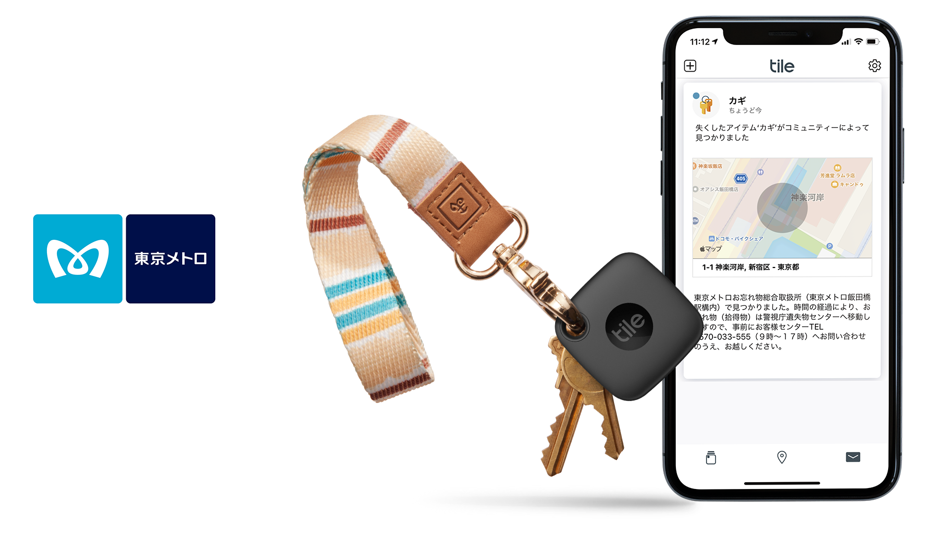 今回、東京メトロ飯田橋駅構内のお忘れ物総合取扱所に「Tileアクセスポイント」を設置することにより、Tileが装着された忘れ物が「お忘れ物総合取扱所」に届くと、位置情報のメッセージが持ち主に通知されるため、紛失物を発見する確率が飛躍的に向上し、早期発見に繋げることができます。