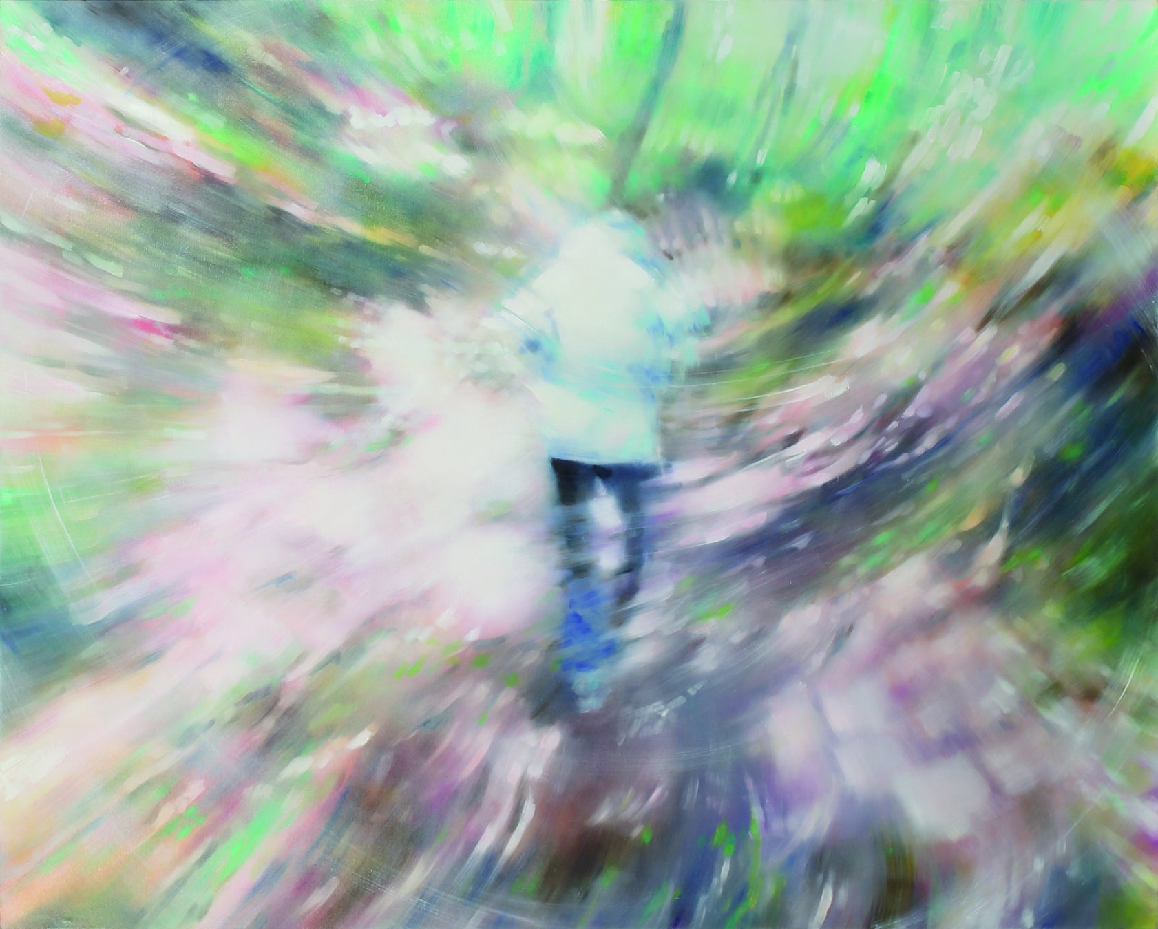 記憶を描くために記録を見るという行為を描く。記録から再生される記憶の映像を留めるために。揺らぐ光、散乱する色彩、溶けだす輪郭線。キャンバスに描かれた朧げな日々は、新たな意味を持ち合わせ、誰かのあのときへと繋がっていく。