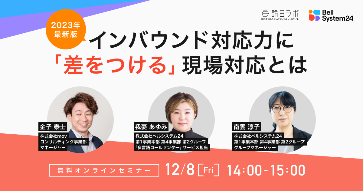 そこで本セミナーでは、多数のインバウンド受け入れ態勢構築の支援を行ってきた株式会社ベルシステム24とともに、インバウンド対応力で押さえるべきポイントについて解説いたします。店舗運営者が抑えるべきポイントが盛りだくさんとなっておりますので、「インバウンド売上UPを目指したい方」「現場の受け入れ体制構築にお困りの方」は奮ってご参加くださいませ!