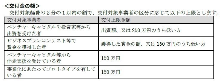 ビジネスプランコンテスト等で賞金を獲得した者 | 獲得した賞金の額、又は150万円のうち低い方 |