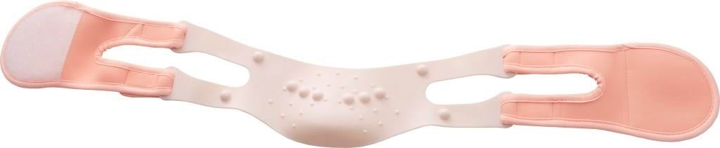 あご部分はシリコーン素材で輪郭に着圧フィット!突起付きであご下を刺激します。