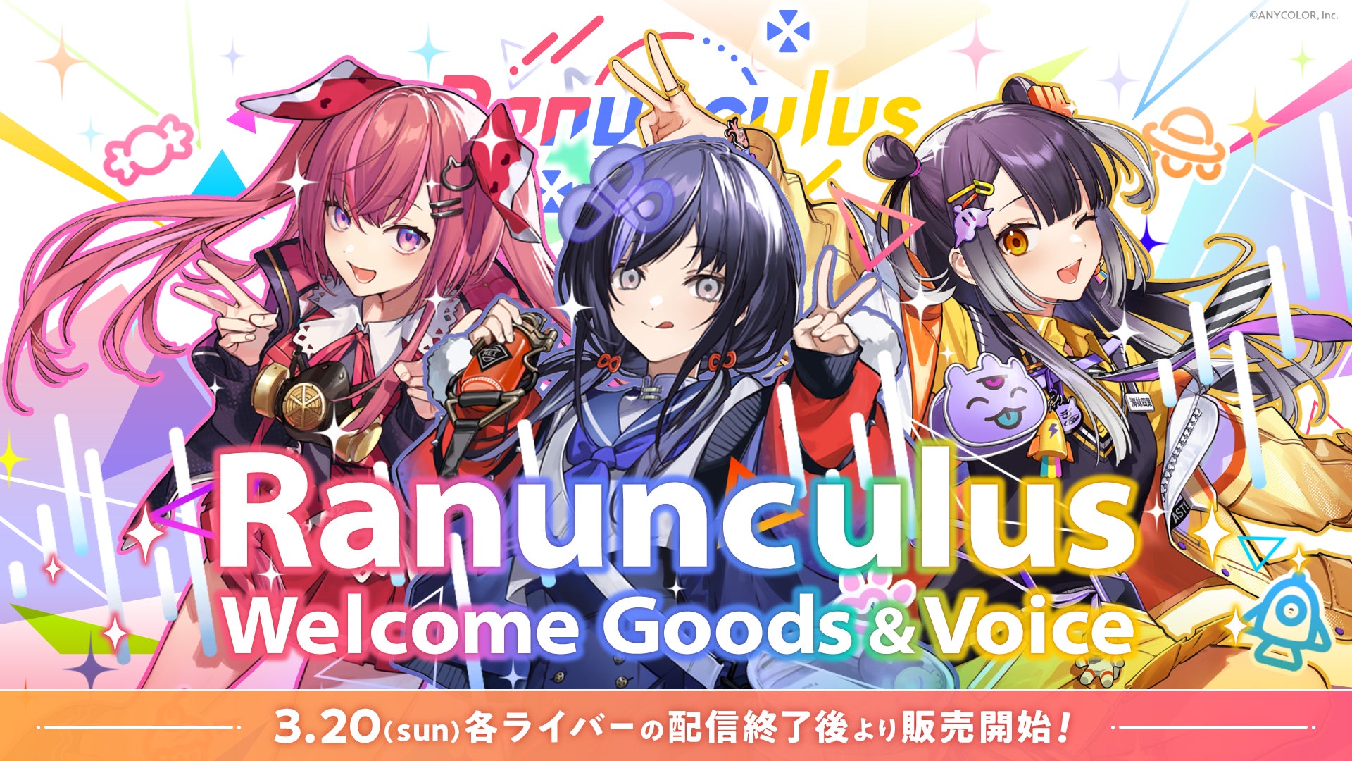 ANYCOLOR株式会社(本社:東京都港区 代表取締役:田角陸、以下「当社」)が運営するVTuber / バーチャルライバーグループ「にじさんじ」は、本日2022年3月16日(水)よりVTuberグループ『Ranunculus(ラナンキュラス)』のメンバーとして3名のライバーがデビューすることをお知らせいたします。また、各ライバーのプロフィールや、デビュー記念のグッズ・ボイス販売、デビュー特別番組および楽曲情報についても併せて公開いたします。