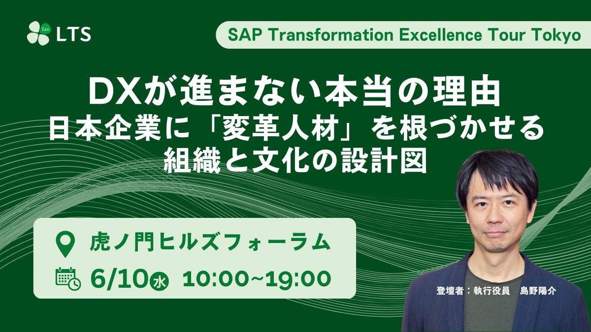 株式会社エル・ティー・エス(本社:東京都港区、代表取締役 社長執行役員:樺島 弘明/以下、LTS)は、SAPジャパンが主催する「SAP Transformation Excellence Tour Tokyo」に登壇することをお知らせします。
