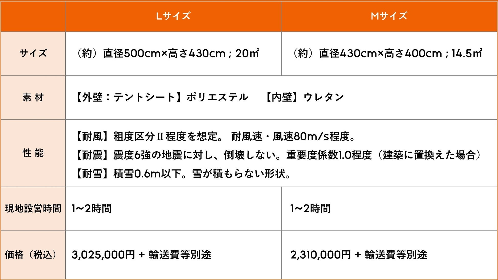 インスタントハウスは、2011年3月の東日本大震災の避難所での名古屋工業大学大学院工学研究科北川啓介教授の経験がきっかけの研究をもとに、2018年からLIFULLと名古屋工業大学との共同研究にて開発した新しいプロダクトです。土地に定着していないため非建築物扱い※2となり、建築物のような制約がなく、さまざまな土地に設置できます。テントシートを空気で膨らませ、内側から断熱材に使用されている硬質発砲ウレタンを吹き付け施工します。シンプルな工法で1棟あたり3~4時間で建設可能なだけでなく、断熱性や耐久性に優れ、さらに耐震性や耐風性をあわせもつことから、ワークスペースや宿泊スペース、避難所の医療救護室やコミュニティの休憩所、断熱を要する備蓄倉庫などにも活用できます。