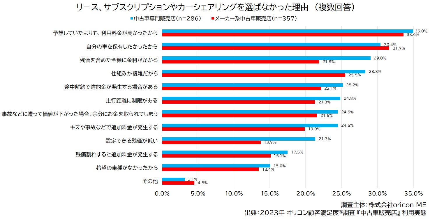 検討したが選ばなかった理由は「予想よりも料金が高かった」「自分の車を保有したかった」が多い