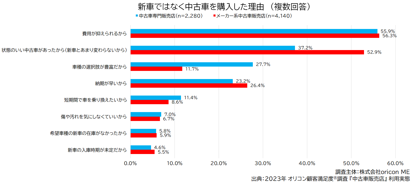 “新車ではなく中古車を選んだ理由”は…? 2023年オリコン顧客満足度®調査『中古車販売店』利用実態データ
