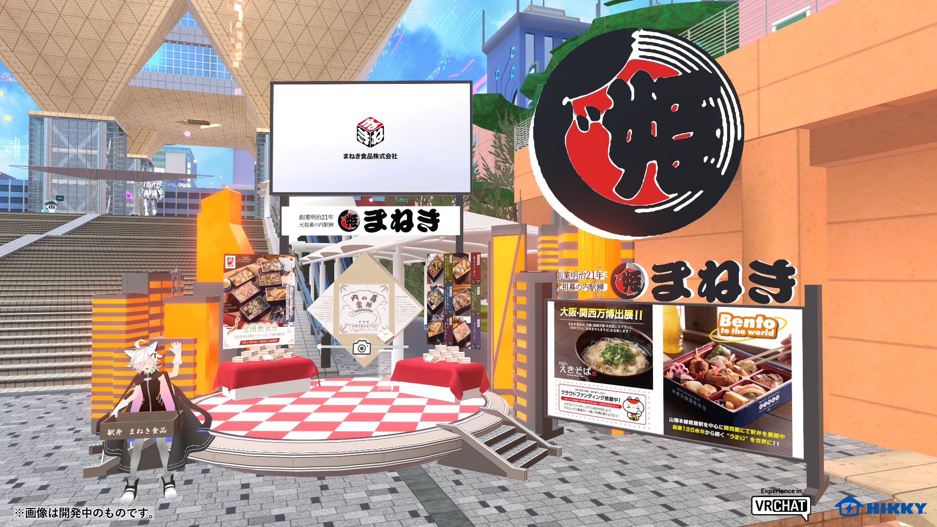 「幕の内弁当」を駅弁として全国で初めて販売した老舗駅弁屋のまねき食品株式会社が、弁当業界初のバーチャルマーケット出展が決定!国内外の来場者に幕の内弁当/BENTOを知っていただき、駅弁業界に所属するまねき食品がBENTOをPRすべく、パラリアルお台場にブースを出展します。ブースでは、自身のアバター姿を設置されているカメラで撮影すると、まねき食品の「元祖幕の内駅弁」のパッケージに反映される、オリジナル幕の内駅弁作りが楽しめます。その他、大阪・関西万博への出展や、まねき食品ECサイトで購入出来る人気弁当のポスターを展示します。