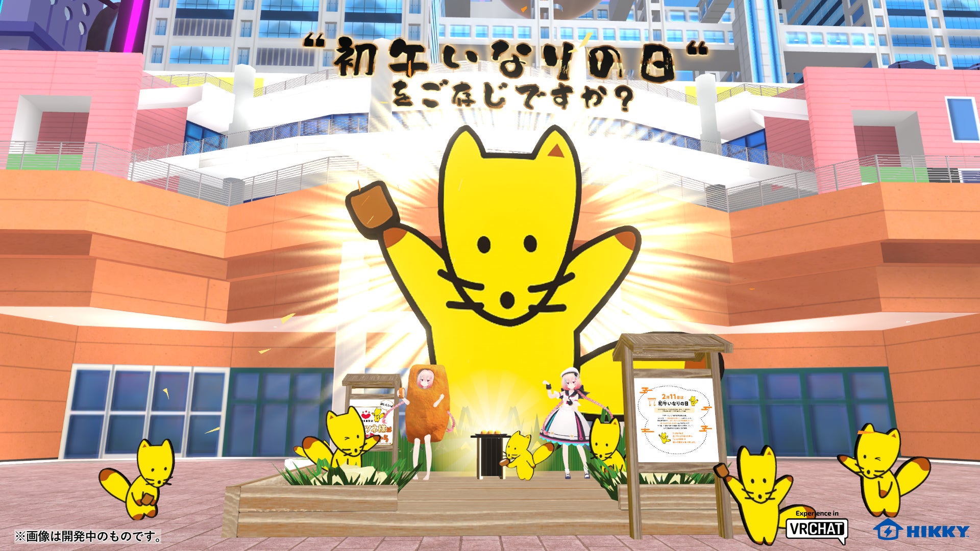 いなり寿司を食べて福を招く、2月11日が『初午いなりの日』として記念日登録されたのを受け、その認知拡大を図るべく、パラリアルお台場にて巨大ないなり寿司が目印のブースを展開します。ブースに近づくと、巨大いなり寿司が同社のイメージキャラクター・コン太くんに変化!コン太くんのしっぽに座って記念写真が撮影できるほか、自身のアバターに狐耳を装着することができ、いなり寿司を食べると耳がぴょこぴょこと動く可愛らしい動作を体験できます。いなり寿司に包まれた“いなりVketちゃん“にもご注目!いなりVketちゃんアバターになって会場内を楽しむこともできます。訪れたら誰もがいなり寿司が食べたくなってしまうこと必至のブースです!