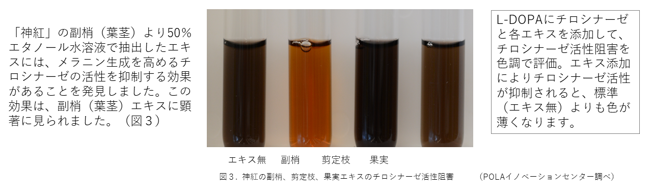 - 「神紅」副梢(葉茎)エキスのチロシナーゼ活性阻害効果