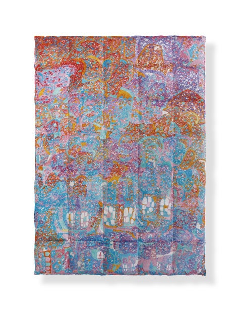 敷き詰められた色彩の中に見え隠れする動物たち。尻尾を捕まえてやろうと息を巻くほどに、私たちは出口を見失って迷子になってしまう。ここはまるで、極彩色の迷宮。都会の伏魔殿。メロンの地図。甘い蜜に誘われて、どこまでもこの絵の中を歩き続ける。