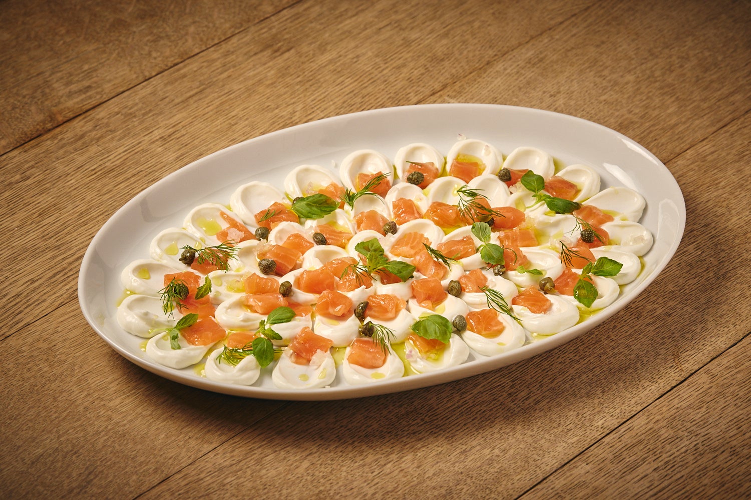 新たに開発したビストロメニューは、素材の温度や香りの余韻まで繊細に整えた味わい。花びらのように並べたなめらかなクリームチーズの上にスモークサーモンを軽やかに重ね、爽やかな香りと塩味・酸味のバランスが心地良い「スモークサーモンとクリームチーズ」や数量限定の「本日のテリーヌ」などの前菜から、「白子と白ネギのグラタン」などの魚料理、丁寧に火入れし香ばしく焼き上げた「鴨胸肉のロースト シェリービネガーソース」などの肉料理まで、会話に寄り添うラインナップを揃えました。デザートには香ばしく焼き上げたシュー生地にカスタードクリームと生クリームを合わせた滑らかなクリームを詰め、ブランデーで香りを引き立てたフランス産栗のモンブランクリームを絞った「モンブラン パリ・ブレスト」などを用意、甘美な締めを演出します。