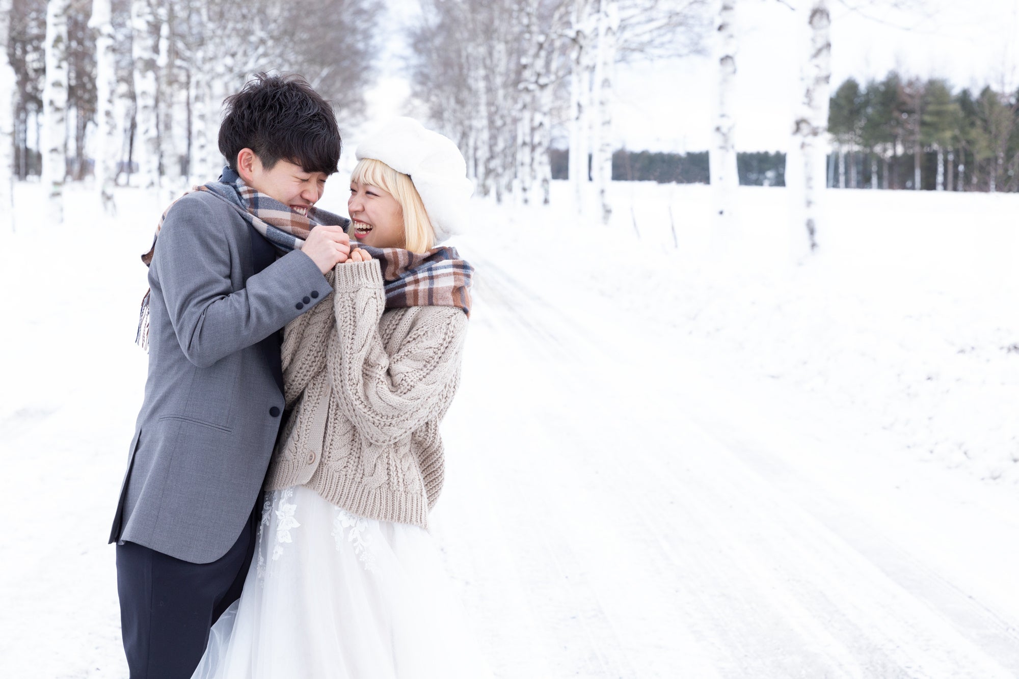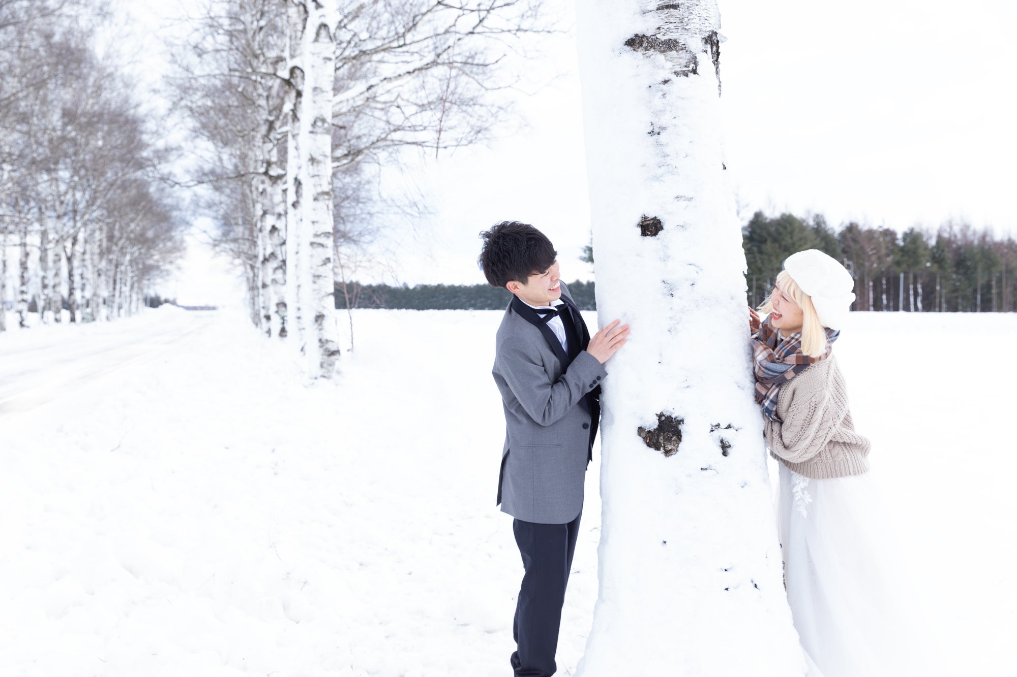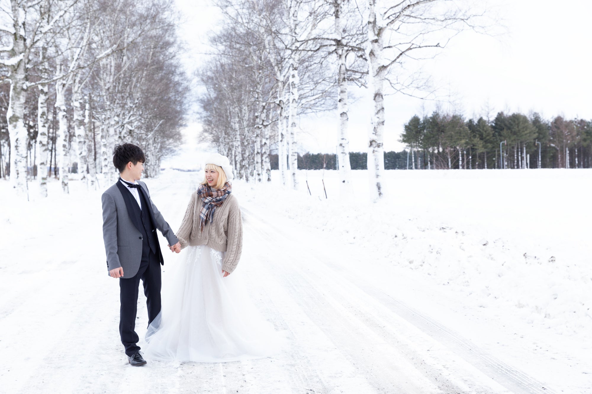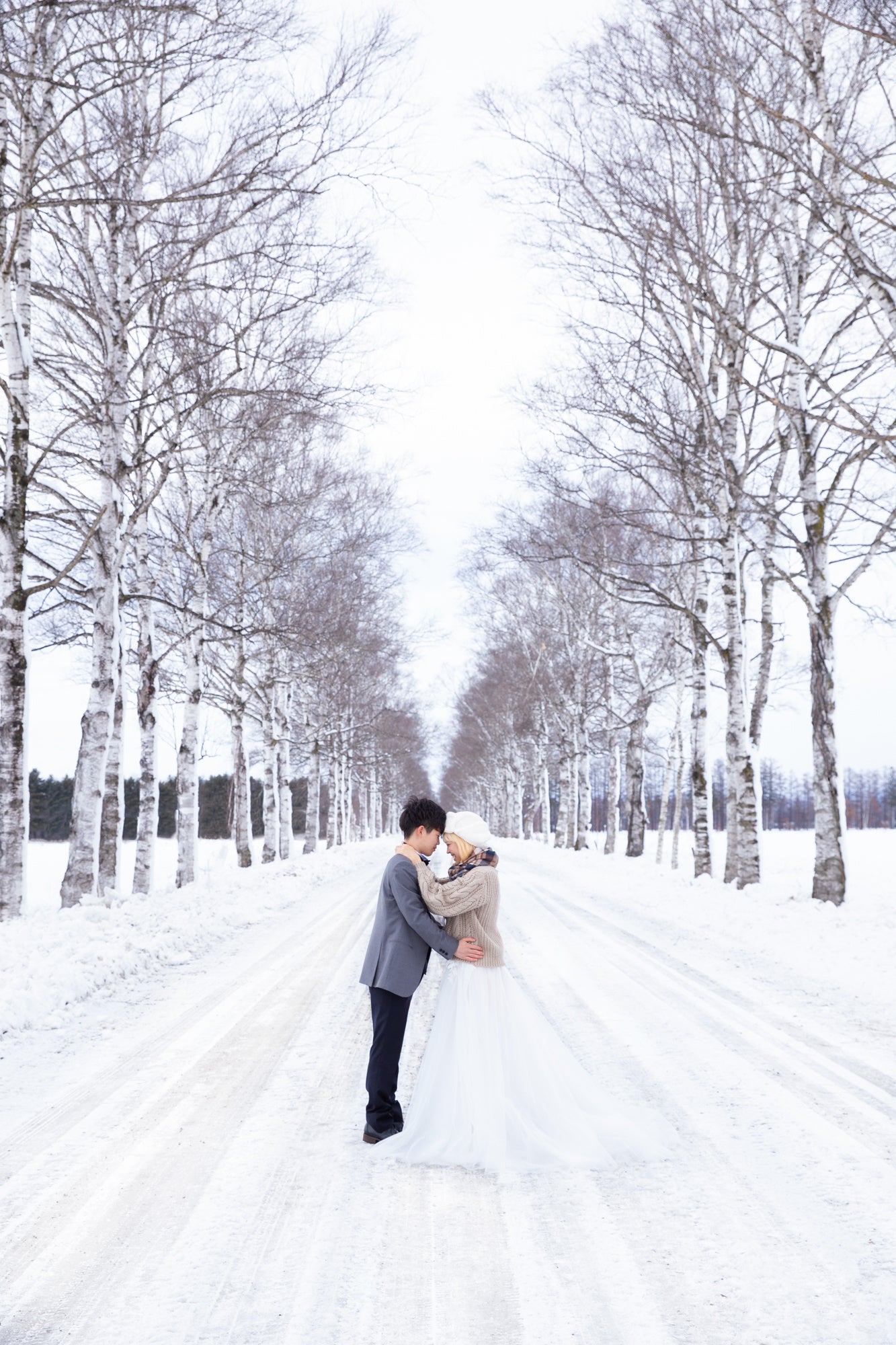 『白樺並木×雪』で北海道・十勝でしか撮影できないロケーションフォトウェディング