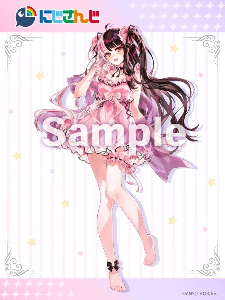 今回、第2弾として、幅広い種類のゲーム配信や雑談配信でも人気を誇る、夜見れなさんのタイクレ限定プライズを8月29日(木)20時より稼働いたします。限定プライズ制作のために「ネグリジェ」をテーマにしたイラストを新たに描き下ろしております。散りばめられたリボンや透明感のあるレースによって甘くふわっとした雰囲気を演出するネグリジェ姿のイラストはファンの方々必見です。限定プライズは無くなり次第終了となりますので、ぜひこの特別な機会をお見逃しなく。