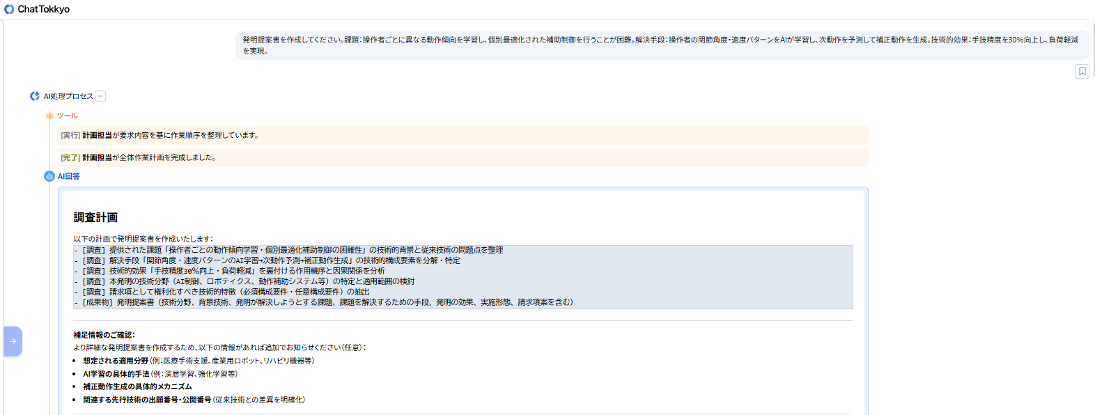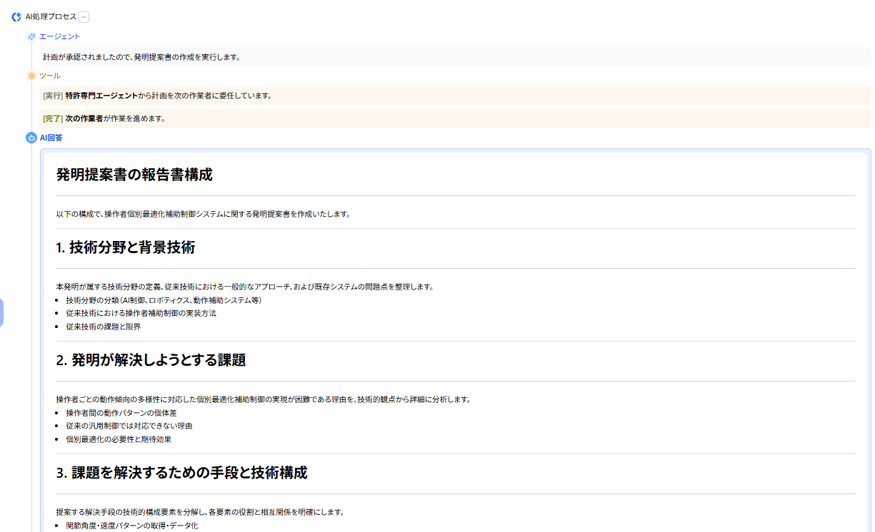 これらの要素をMyTokkyo.Ai上で対話的に整理することで、技術の新規性や効果を明確化し、特許出願を見据えた発明提案書を短期間で作成することが可能となった。